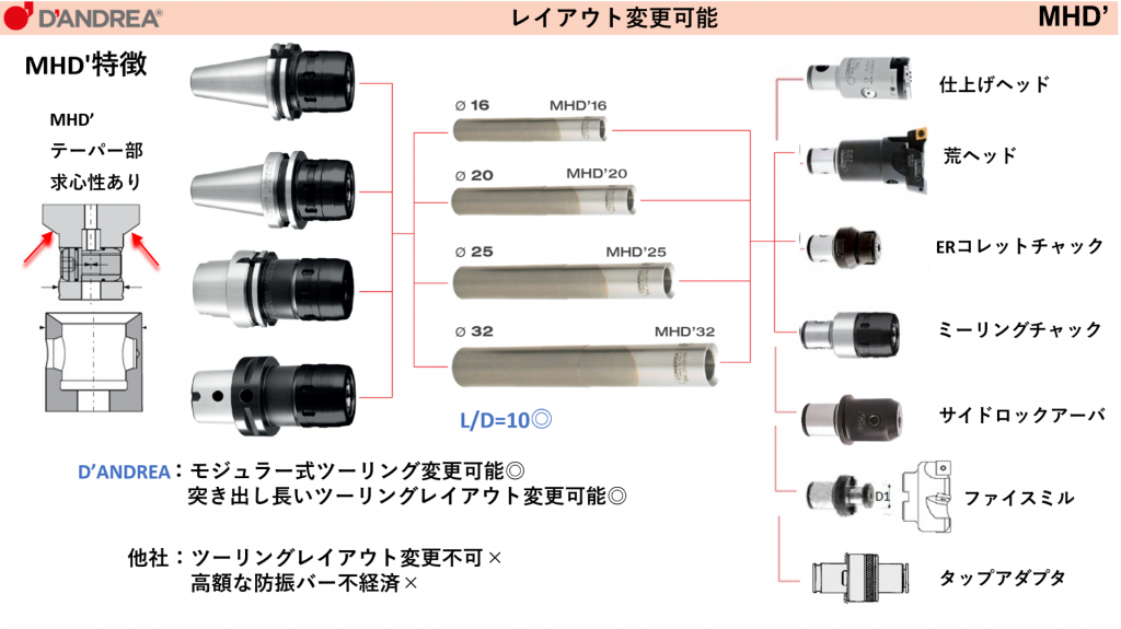 D’ANDREAの工具システムの根幹をなすのが、モジュラータイプの工具ホルダー「MHD」および「PSC」シリーズです。