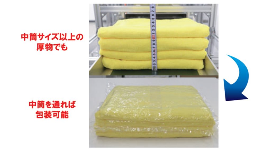 厚みのある商品でも、中筒を通るサイズであればあらゆる商品の脱気が可能。複数のアイテムを包装する現場でも安心して使用することができます。