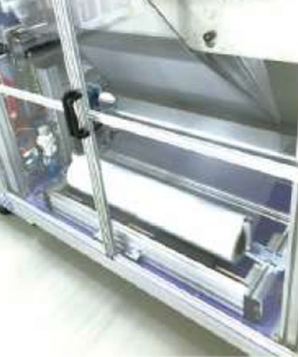 包装に使用するフィルムは、2つ折りロールフィルムを採用しており、装置全体をコンパクトにまとめています。また、本体の扉は透明仕様となっているため、フィルムの残量を目視で確認でき、交換のタイミングを簡単に把握することができます。