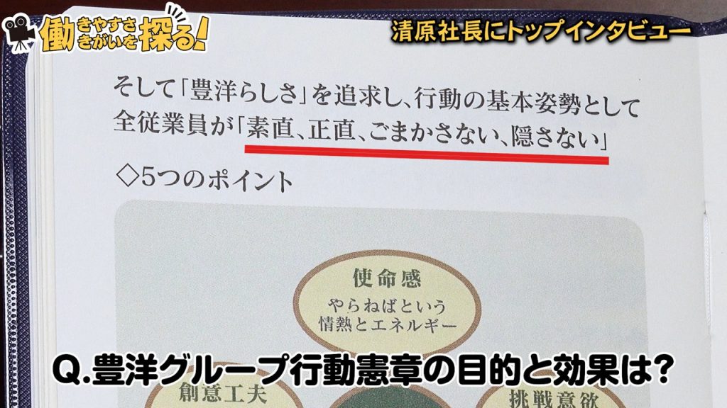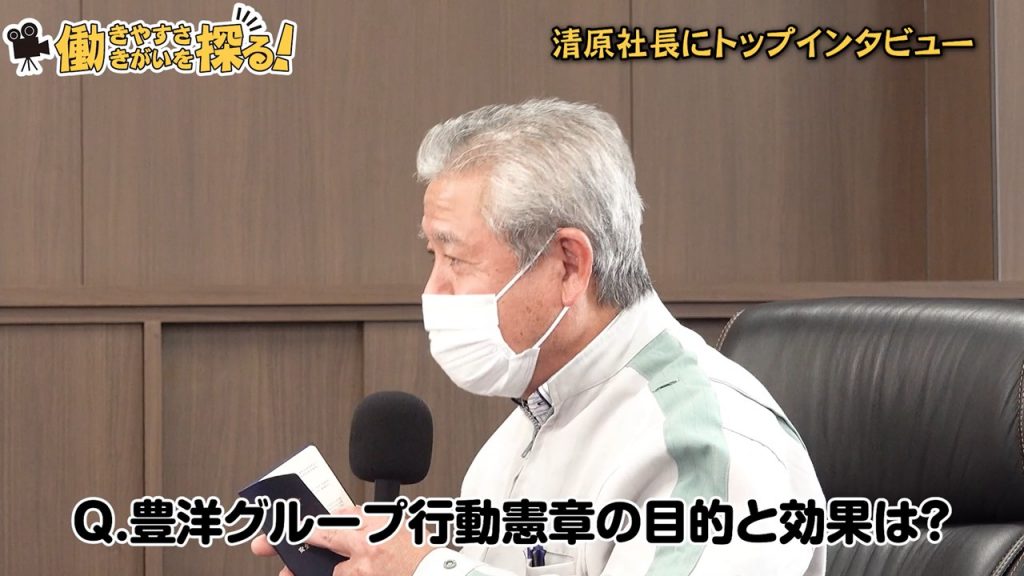 学生:御社グループは、コンプライアンスを具体化した「豊洋グループ行動憲章」を制定されていますが、その目的と効果についてお聞かせください。