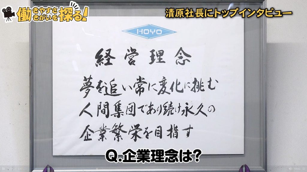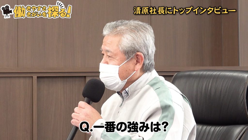 清原社長:私どもは、「夢を追い常に変化に挑む人間集団であり続け永久の企業繁栄を目指す」というのが経営理念でございます。そこで働く方々が同じように夢をもって、楽しく頑張って幸せになるという想いを企業理念にしています。