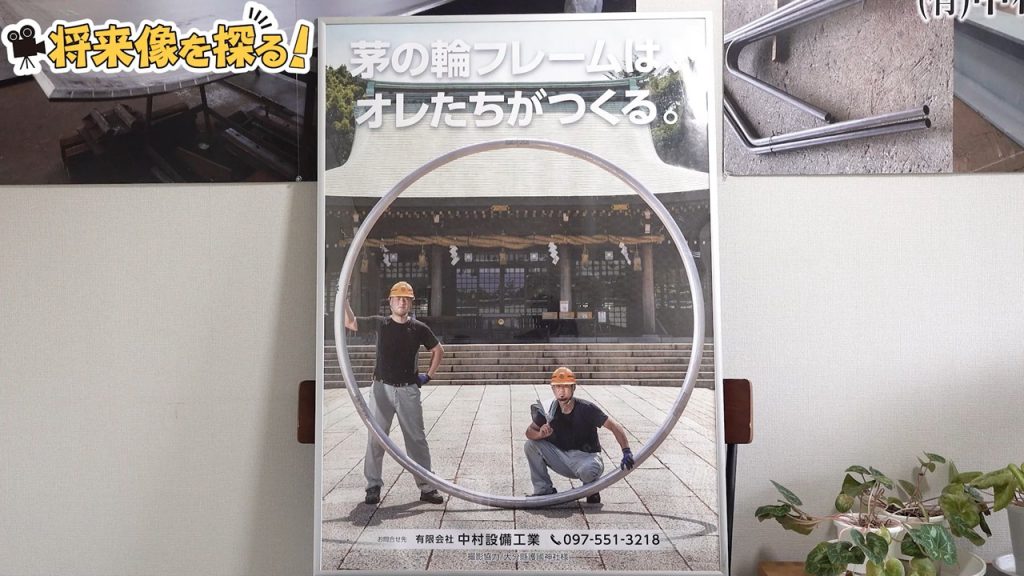 最近の身近なところでは「茅の輪フレームは、オレたちがつくる。」です。輪に草を巻いてくぐったら願い事が叶いますよってやつですね。多分、日本全国の行事なんですが、この輪は雨が降ったら丸くなってくたびれてしまう。