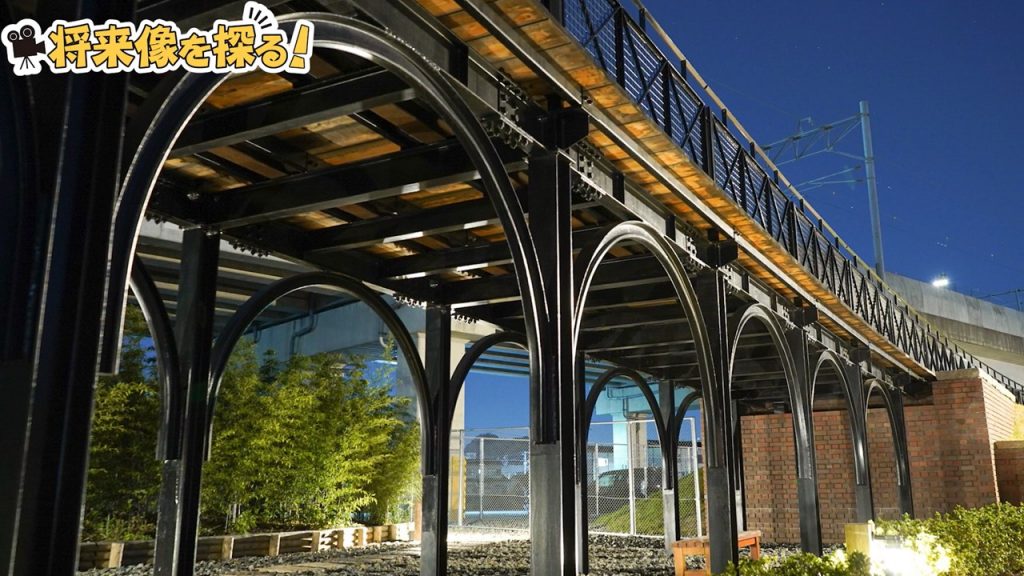 「ハーモニーランドのジェットコースター用レール」や「ガレリア竹町アーケードの天井アーチ」、「工場の煙突」などといった様々な建造物で、曲げ技術が用いられています。グッドデザイン賞を受賞した線路敷、ボードウォーク広場の整備にも携わっており、地域づくりに貢献しています。
