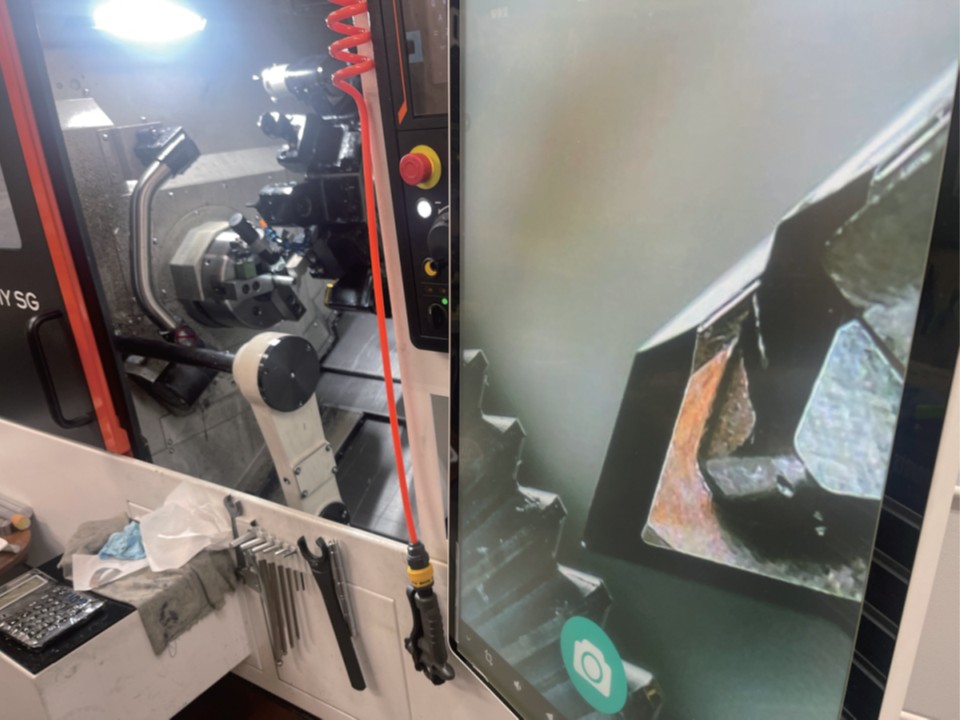 これまでは、再ネジ切り機能付きの機械でネジ位置を調整する際、手パ(手動パルス)で刃先を動かしながら目視により合わせを行っていました。