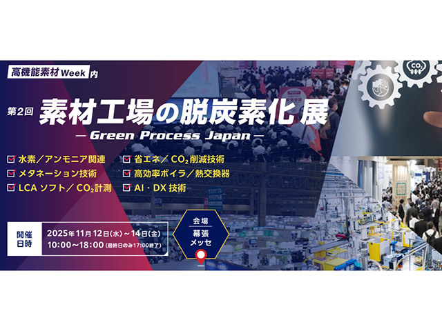 鉄鋼、化学、窯業・セメント、紙・パルプ、非鉄金属などの素材工場の脱炭素化に特化した専門展です。燃料・製造プロセスから工場全体に至るまであらゆる脱炭素技術が一堂に集結します。
