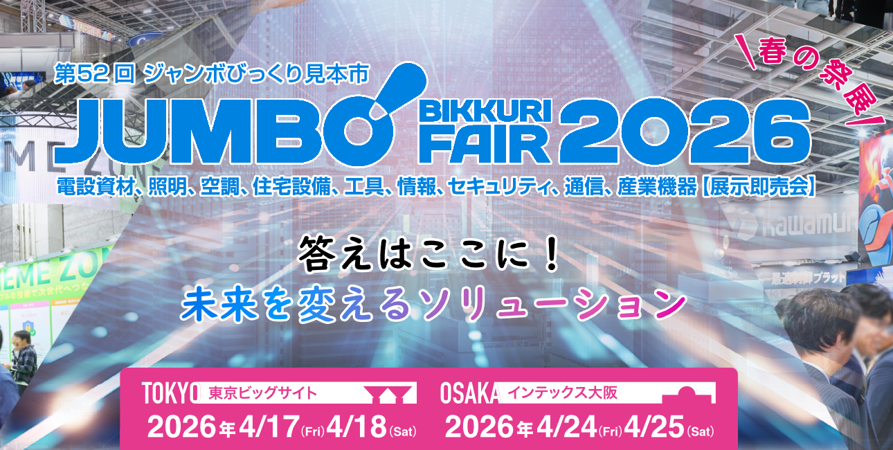 今回も、総合力で魅せる電設資材・住宅設備・情報設備・工具・産業機器の総合見本市として専門メーカー約200社が集結いたします。旬で話題の新商品や最新情報をお届けしますので、是非ご来場ください。