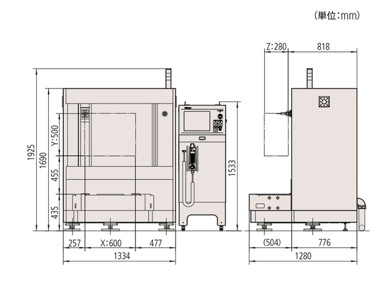 ・機械重量は設置台・コントローラを含みます。また、特別付属品は含みません。