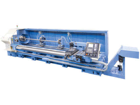 油圧チャックや、自動四角刃物台, 自動芯出し振れ止など多彩なオプションが選択可能で、ユーザー様に合わせた機械をカスタマイズ可能です。 芯間6000mm以上も対応しております。 一体構造の3条ベッドの機械で、振れ止で受けながら一発で最後まで加工する事が可能な機械です。